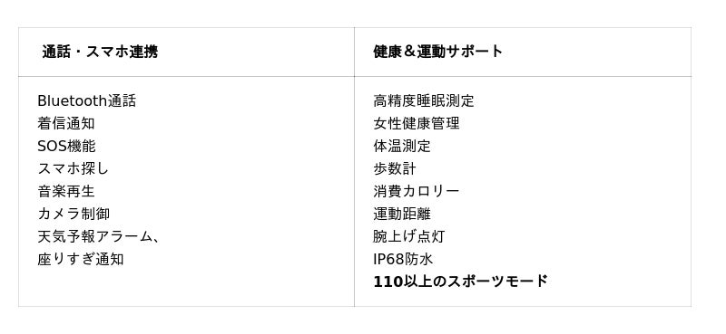 10周年モデルは、通話・健康管理・運動サポートなど、日常を支える機能を大幅強化しました。
