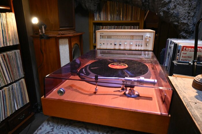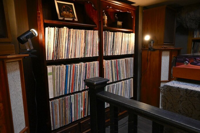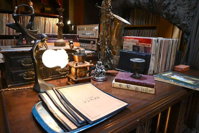 カウンターを出て横のスペースには、ジャズ喫茶ならではとも言えるレコードがずらり。レコードは、1980年代に揃えているであろうものを集めたのだそう。