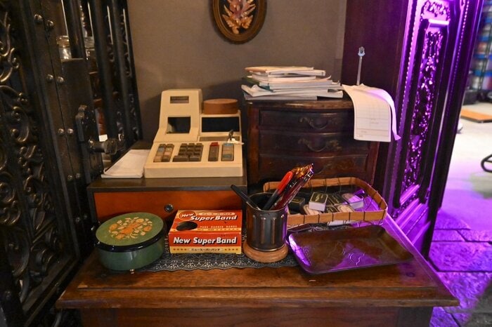 稲場さんは「当時は、今のような形式の無料案内所がなかったそうなので、このセットはとても自由に飾れました。おばばのキャラクターも考えながら、萬屋(よろずや)的で妖(あや)しい空間ができるよう飾りました」と明かしました。