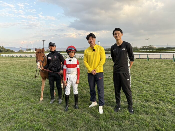 「日本最速ポニー vs リレー侍」では、「ヒトはウマより速く走れるのか?」という究極のテーマのもと、時速40kmを誇る2023年のポニー競馬王者「ツクモビジン号」と、東京世界陸上・日本代表として男子4×100メートルリレーをともに走った小池祐貴選手、鵜澤飛羽選手が対決。