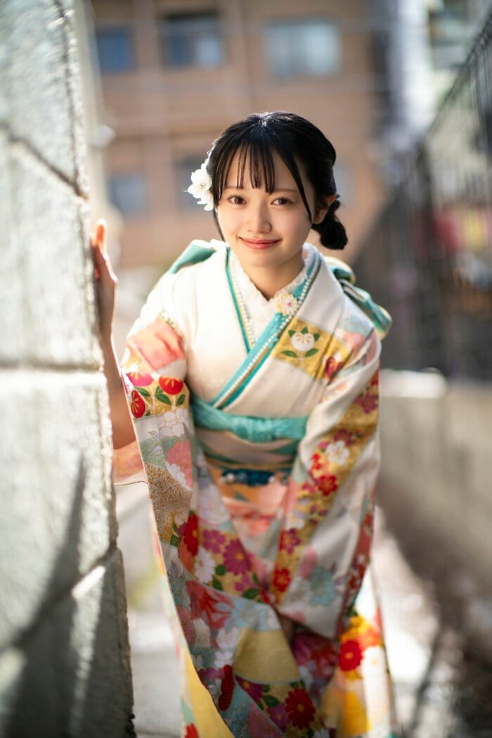 稲熊さんは浅草の遊園地で射的を楽しんだり、揚げ饅頭を食べたりと、あどけなさが残る素の表情が魅力的なショットが満載とのことで、浅草の街並みで白い振袖が映える稲熊ひなさんのカットも公開されました。
