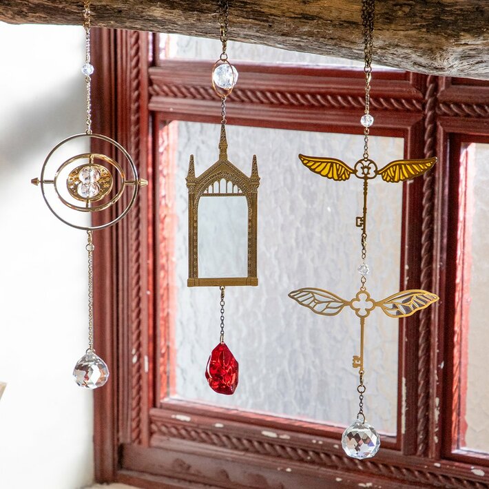 賢者の石やタイムターナーなどがモチーフの、サンキャッチャーやアクセサリーがラインアップ