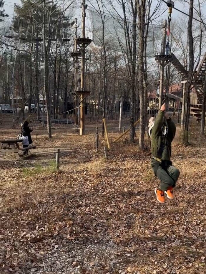 アップされた動画では、ジップラインを堪能する長男の様子が収められています。