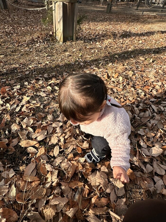 一方で長女はというと、衛藤さんと一緒に落ち葉拾い!