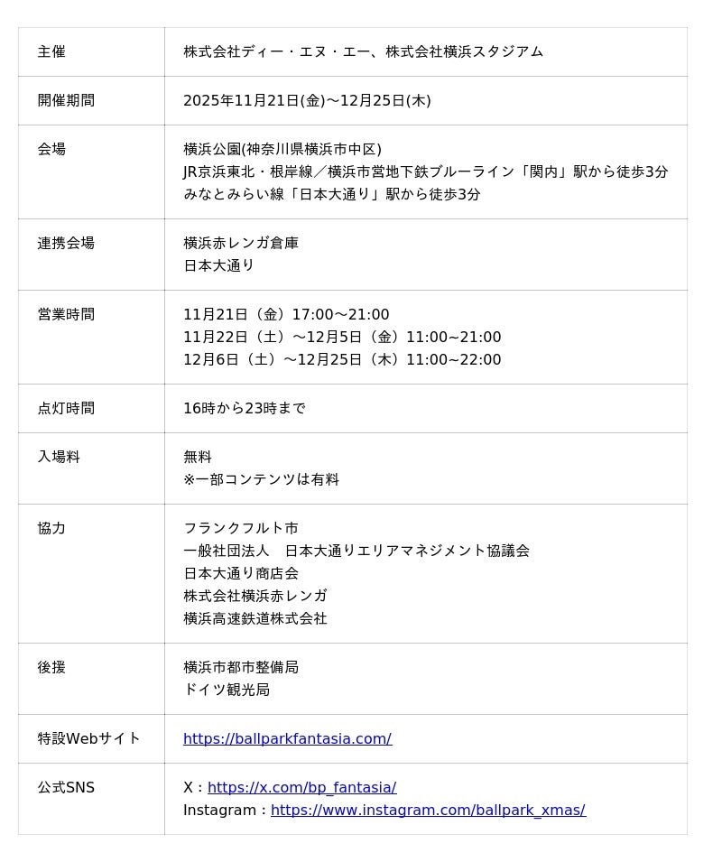 ■「BALLPARK Xmas YOKOHAMA KANNAI 2025」イベント概要