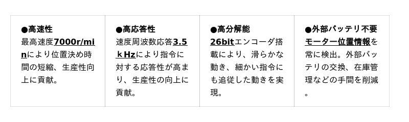 1. 産業用ロボットから精密機器まで対応する高性能●特性・性能