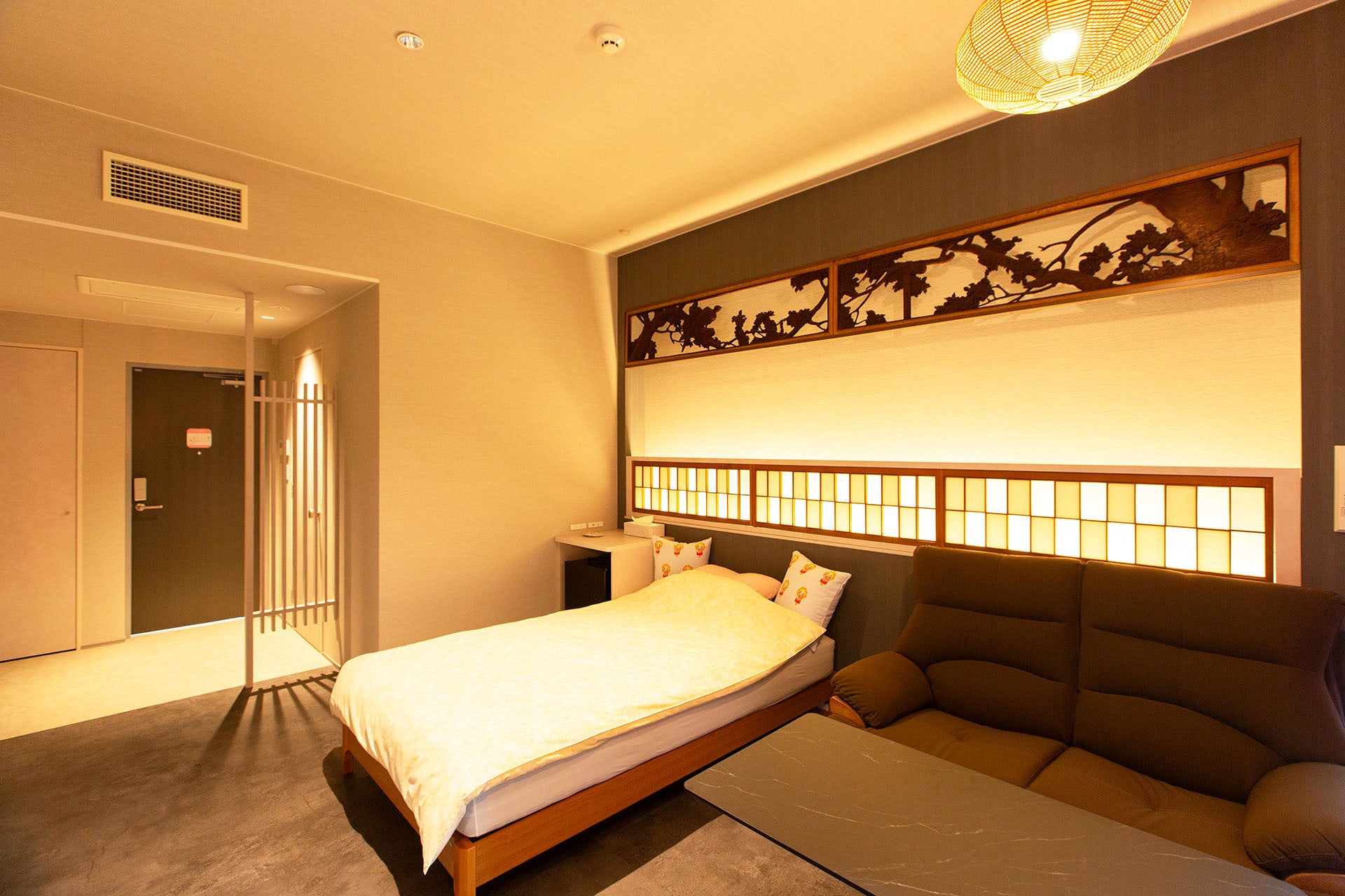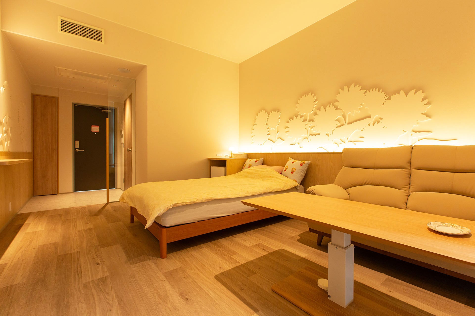 施設は利用者の個室6部屋と1Fには広いラウンジがあり、リゾートライクなラグジュアリー空間と