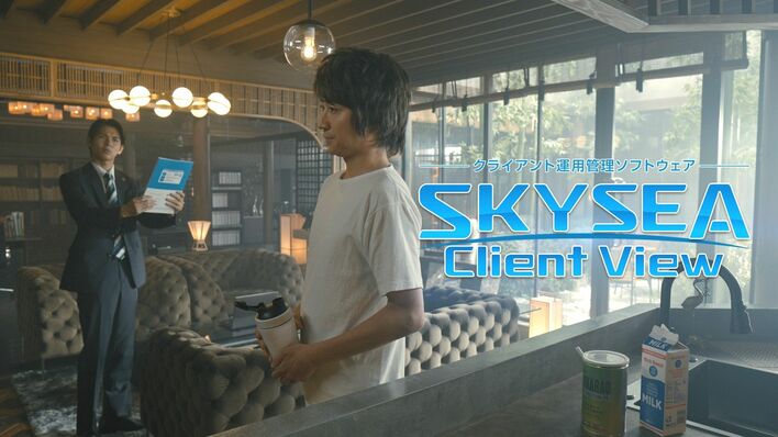 第1弾のコラボCMでは、サイバー空間で発生した“異常現象”に頭を悩ませる興玉(藤原)が「SKYSEA Client View」について初めて知る場面を描きます。