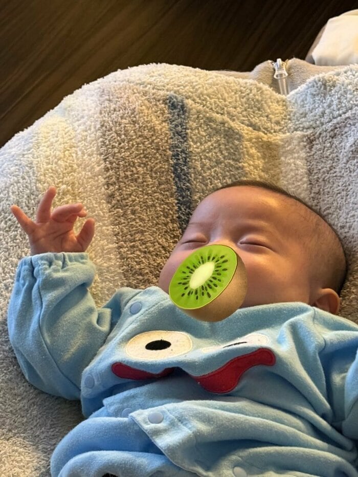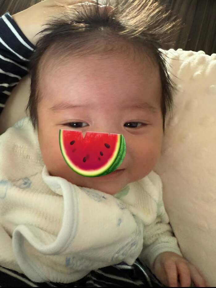 そして今回の投稿では「双子くん 夜通し見守っていたら お兄ちゃんがたくさん笑ってくれました」とつづり、双子のお兄ちゃんのどアップショットを公開。