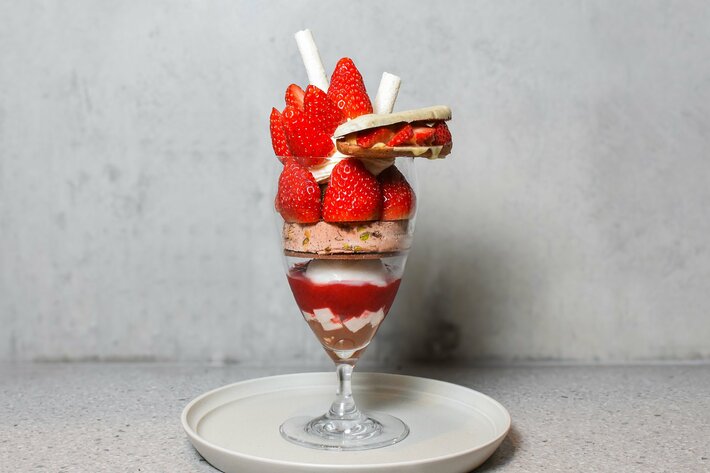 目の前で仕上げる、冬限定の「苺×チョコレート」のパフェ