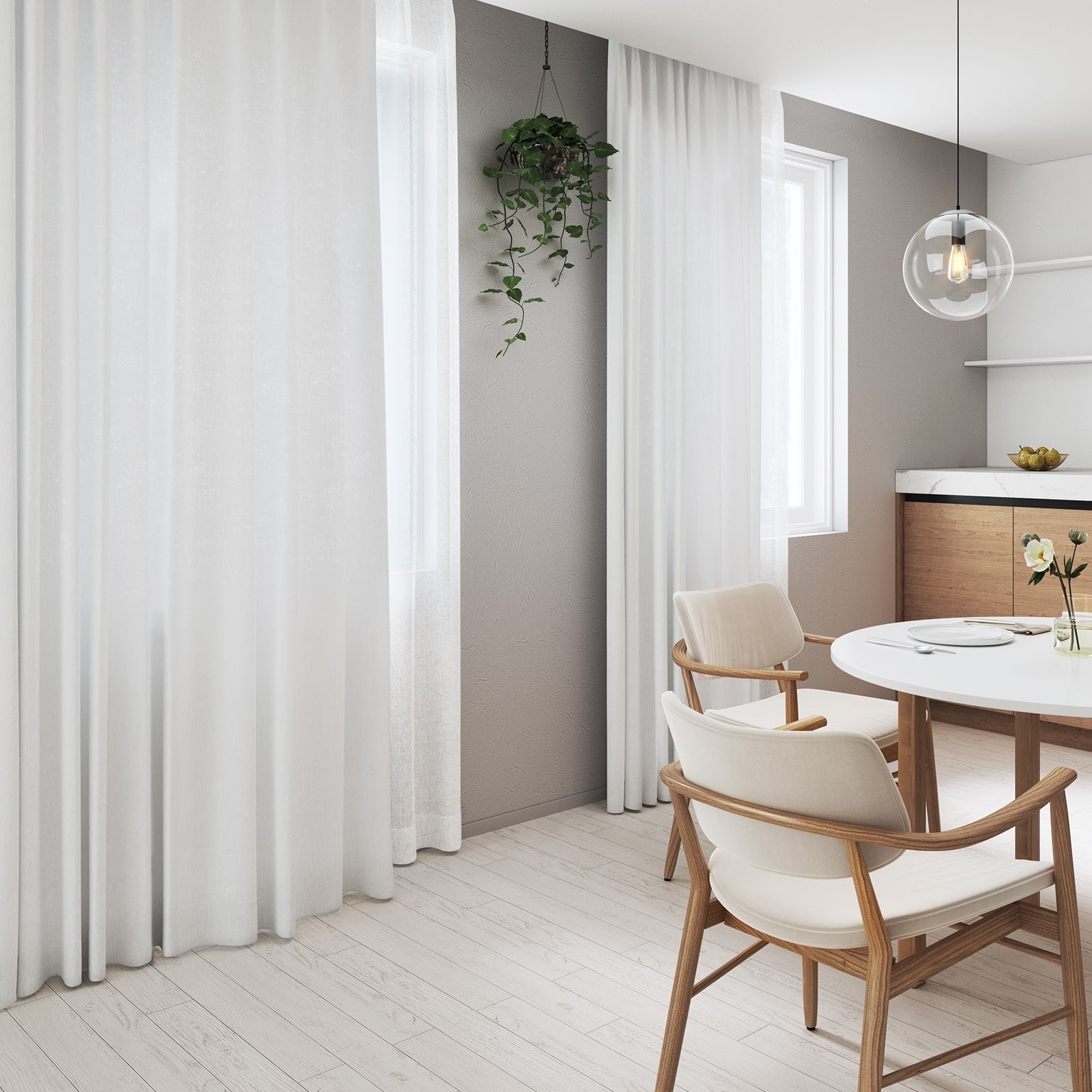 ドレープ:EE0001 生成ベージュ / レース:EE0002 晒ホワイト ※EE0002は、ドレープカーテンですが画像ではレースとして使用しております。