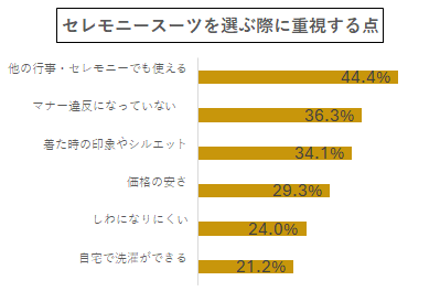 株式会社AOKIの調査※によると、セレモニースーツを選ぶ際に重視する点として挙げられた項目は以下の通り。