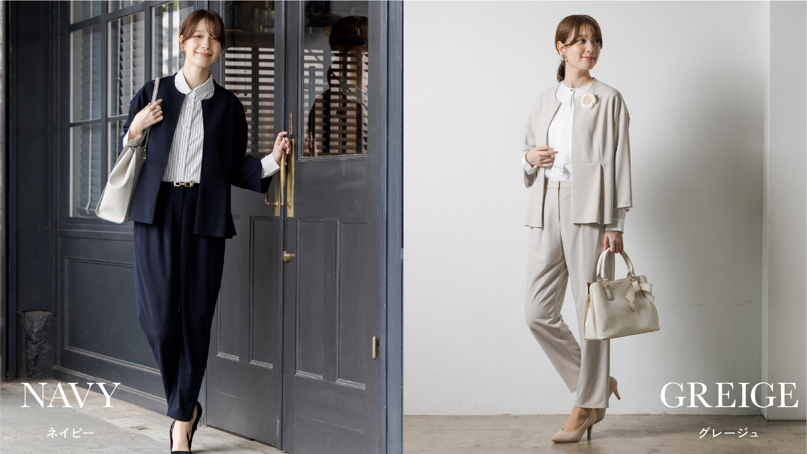 オフィス、七五三などのハレの日、パーティー、発表会、きちんと感が求められる日常まで、幅広いシーンに着回しの利く、万能カラー“ネイビー”と“ベージュ”の2色。