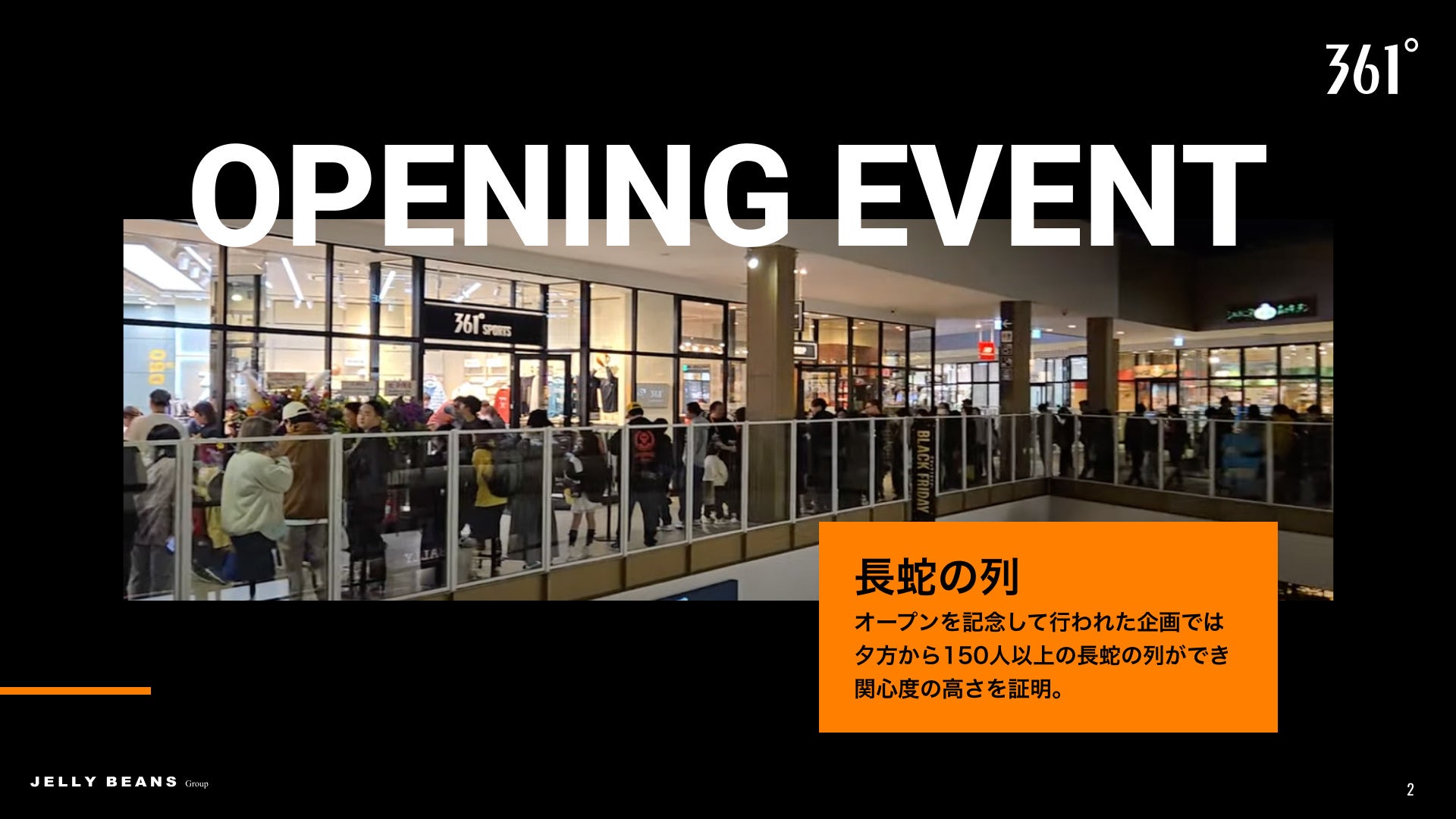株式会社ジェリービーンズグループ(本社:東京都台東区、代表取締役:宮崎 明、以下「ジェリービーンズ」という)の連結子会社である株式会社361 Sports Japan(東京都中央区、代表取締役:林 光、以下「361 Sports Japan」という)は、世界70カ国、7000拠点に展開するグローバルスポーツブランド「361°(スリーシックスティーワン)」の日本第1号店となるオフィシャルストアを、2025年11月28日(金)に越谷レイクタウンアウトレットにオープンいたしました 。