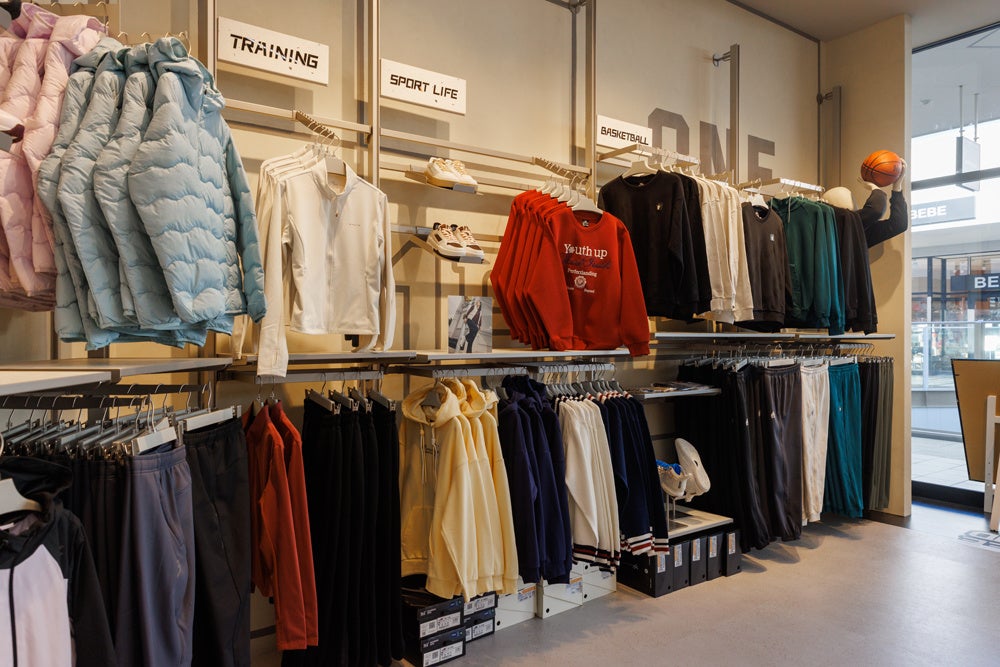 店内は、「スポーツの熱意と洗練された都市の空気、そしてブランドが誇るテクノロジーの融合」をテーマにデザインされています。お客様は、アクティブかつモダンな空間で、日常にも自然に溶け込むスポーツスタイルを、高い機能性とファッション性の両面から深く体験することができます。また、JR武蔵野線「越谷レイクタウン駅」から直結というアクセスの良さも魅力の一つです。取扱商品は、バスケットボールシューズ、ランニングシューズ、トレーニングウェアなど多岐にわたり、バスケットボール、ランニング、スポーツライフ、キッズシューズなど、幅広い商品ラインナップを展開しています。特に、NBAのアーロン・ゴードンやニコラ・ヨキッチとのコラボレーションモデル、さらには地域の越谷アルファーズとのアンバサダー契約など、高い機能性とスタイリッシュなデザインを兼ね備えた人気ブランドの商品が揃っています。