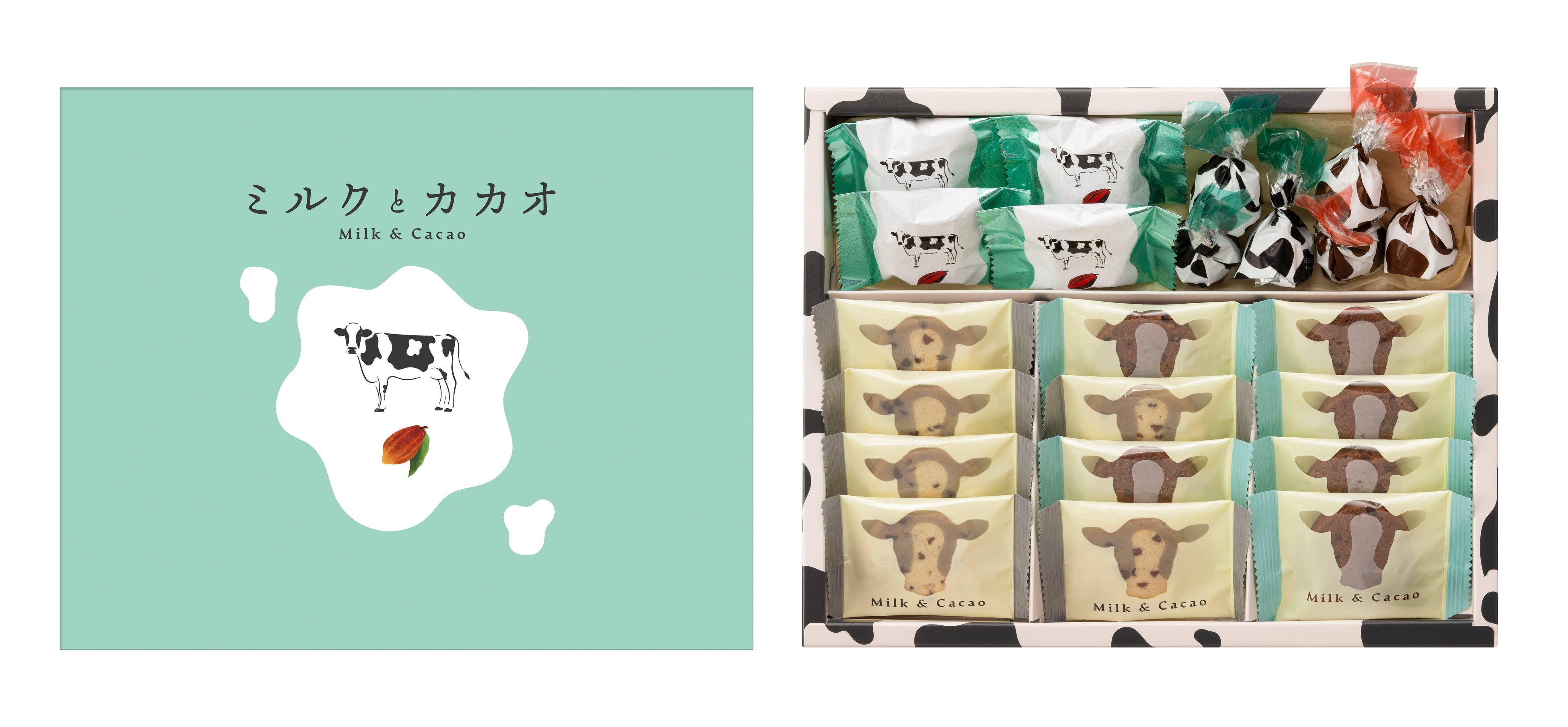コク深くまろやかな甘みが特長の北海道ミルクと、チョコレート屋さんのこだわりが詰まったカカオでつくりあげたスイーツブランド「ミルクとカカオ」。ふたつの味わいのハーモニーをより手軽にお楽しみいただけるよう、クッキーやクランチとなって新しく生まれ変わりました。また、爽やかな白とミントグリーンを基調としたパッケージが、テーブルシーンを明るく彩り、楽しいおやつ時間を演出します。心温まるお手土産にもおすすめです。