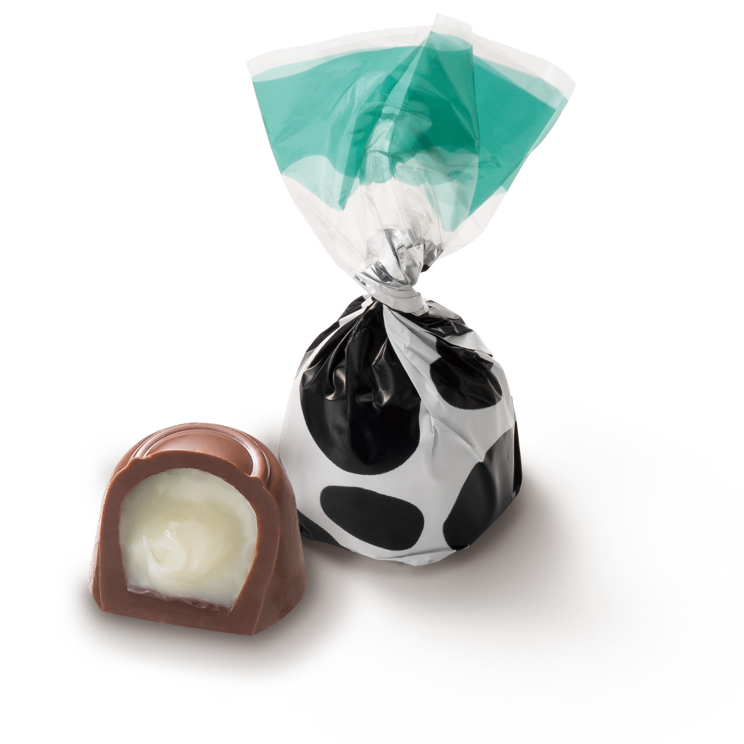 北海道産全粉乳入りのホワイトチョコレートガナッシュをミルクチョコレートで包みました。とろっとしたなめらかな口どけと、ミルキーな味わいが楽しめます。