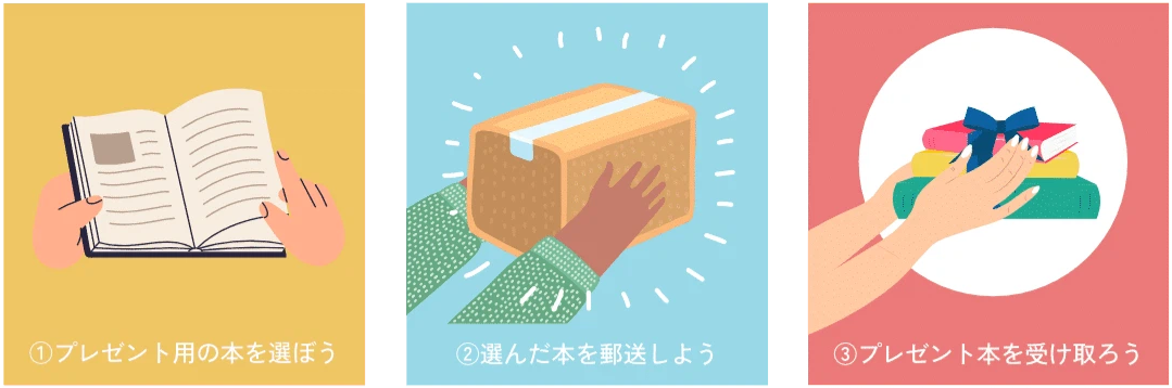 Step2)集まった本を弊社でプレゼント用に包装してランダムに送り返します。