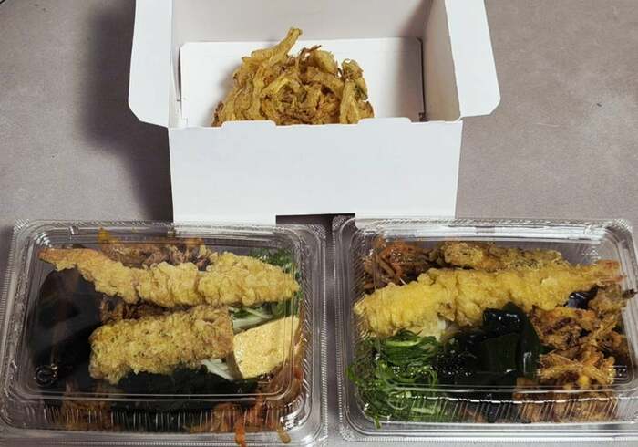 金色の衣をまとった天ぷら、サクサクのかき揚げなども用意されています。和洋どちらの味も楽しめるメニューがずらりと並んでいて、見ているだけでおなかがすいてきそうです。