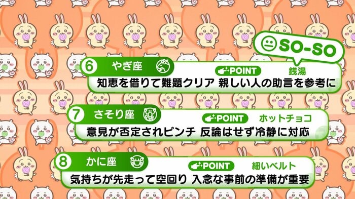 『めざましテレビ』で放送中の「ちいかわ占い」 テレビ放送がない日はお休みで、月~土:朝7時以降に更新予定です。