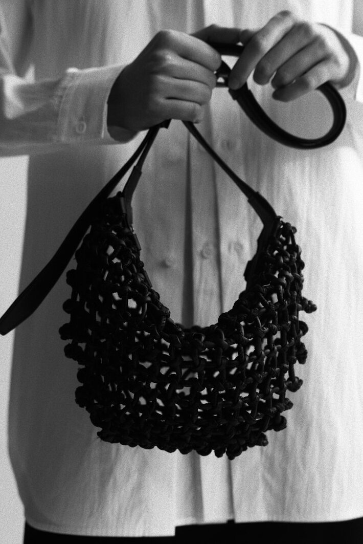 職人が一点ずつ丁寧にマクラメ編みに仕立てたバッグ。柔らかな編み目が生み出す抜け感が特徴で、軽やかな印象を演出します。ハンドメイドならではの風合いを感じられる繊細なアイテムです。