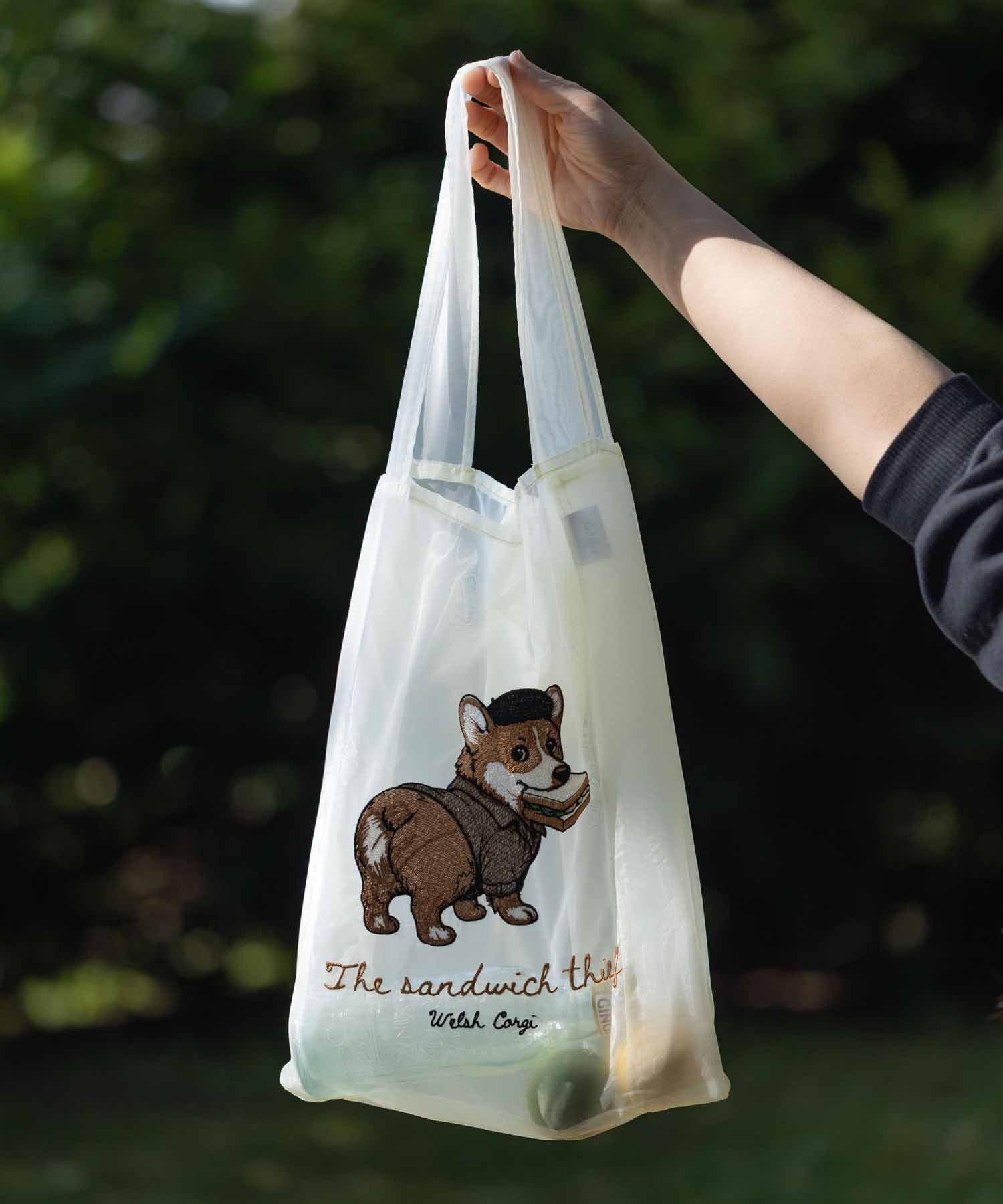 犬猫デザイン オーガンジー 刺繍エコトートバッグ