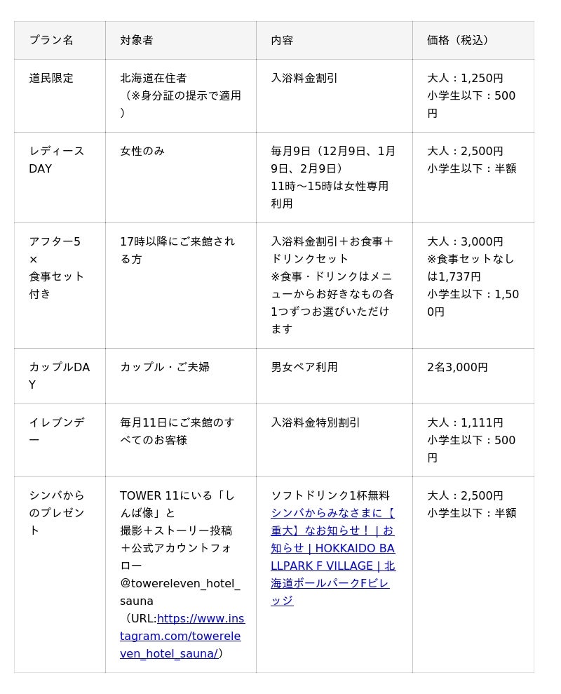 エスコンフィールドHOKKAIDO内・TOWER 11にある温浴施設「tower eleven onsen & sauna」では、毎年ご好評の冬季限定企画「WINTER SALE」を2026年も開催いたします。