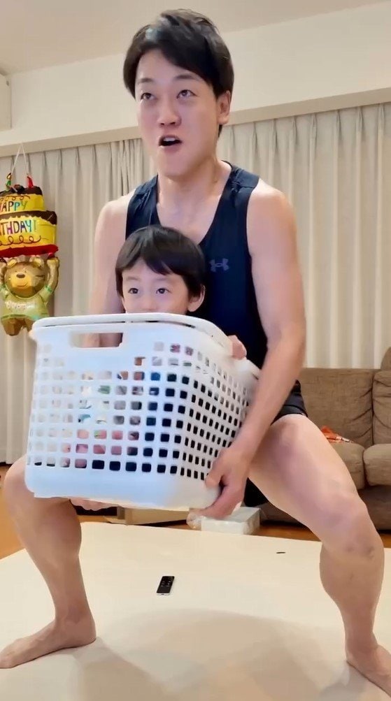 今回の投稿で、「トレーニングしながら息子を楽しませたら脚がパンっパンになりました」とつづり、1本の動画を公開したおばたのお兄さん。
