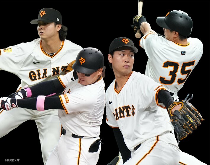 (左上)丸 佳浩選手、(右上)山崎 伊織投手、(左下)泉口 友汰選手、(右下)田中 瑛斗投手