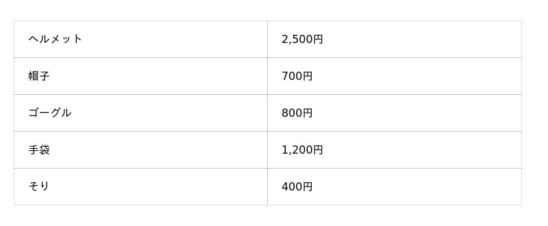 各種料金は以下のとおりで、すべて税込価格となっております。
