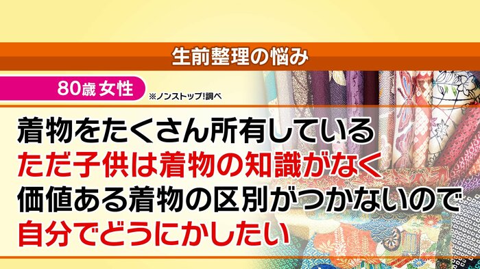 「子どもには着物の知識がないので、たくさん所持している着物を自分でどうにかしたい」という80歳女性のお悩みに対しては、「専門の業者に見てもらうのが良い」と中谷さん。