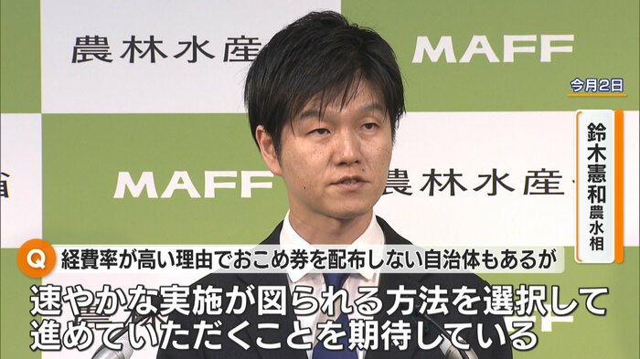 このような「おこめ券反対論」に対して、鈴木農水相は「各自治体においてできる限り負担感が少なく速やかな実施がおこなわれる方法を選択して進めていただく」と回答しています。