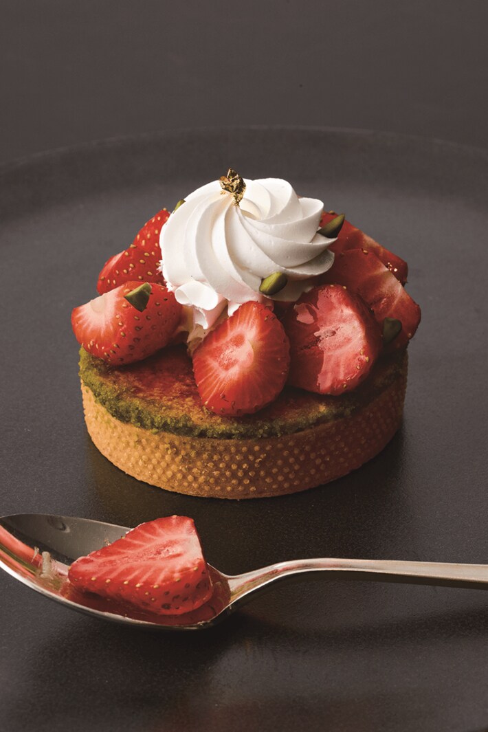 「BRULEEの金色のカップを見た瞬間に、タルト仕立てのイメージが浮かびました。焼き菓子とアイスという真逆の組み合わせに挑み、BRULEEの大きさに合うセルクルを探し、柔らかいアイスをしっかり受け止められるよう、タルト生地は約1.3mmと極薄で調整しています。また、BRULEEの香ばしいキャラメリゼには酸味のあるフルーツが相性良く、冬はいちご、夏はマンゴーがぴったりだと考えました。仕上げにピスタチオを加えることでナッティーな香ばしさと彩りが生まれ、BRULEEの魅力がより引き立ちます」■『BRULEE』とは