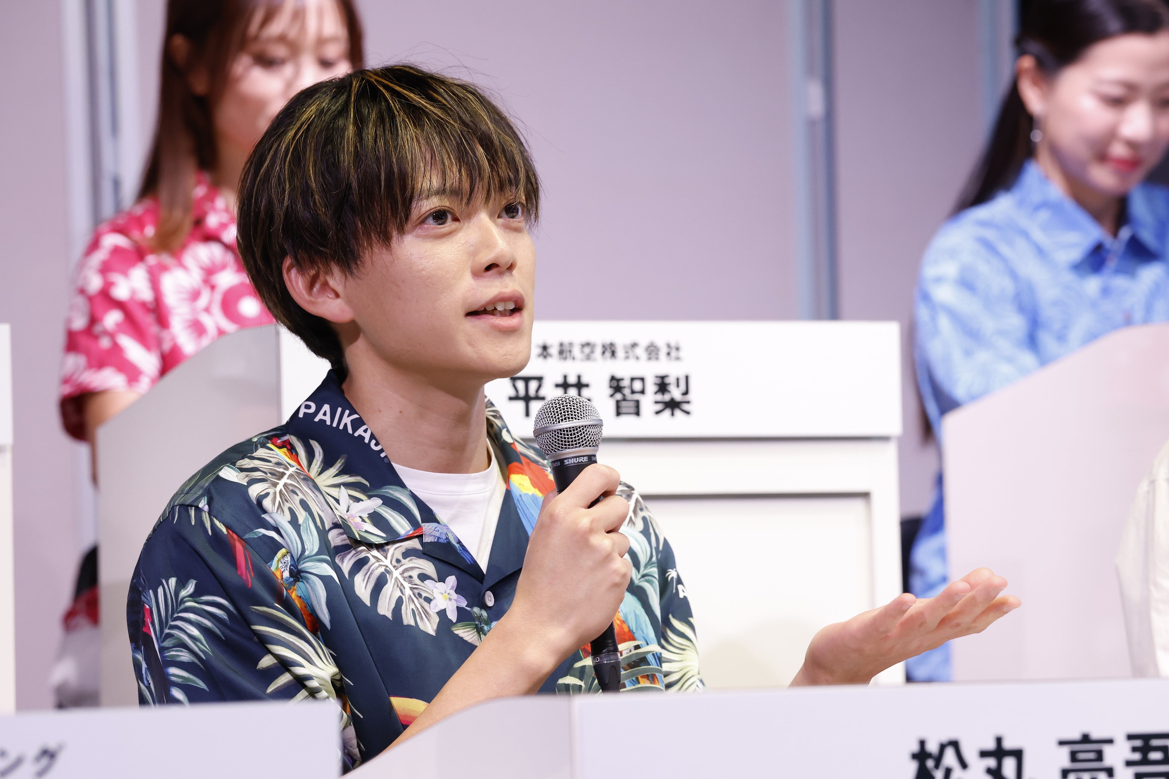 「最終審査会では、学生たちが“ハワイをもっと身近に感じてもらうための旅”というテーマで、自由な発想と情熱を込めたプレゼンテーションを披露。中には、実際のハワイ現地の文化体験や社会課題を絡めた企画など、学生ならではの柔軟な着眼点が光る提案も多く、審査員席からは驚きと感嘆の声が上がりました。松丸亮吾さんは、「1000以上の応募から残った自分たちのアイデアがいかに素晴らしいか自覚して、胸を張ってほしい!」と絶賛のコメント。なごみさんも、「若い世代の方々が感性で生み出すハワイの魅力は本当に幅広いなと感じました。等身大の視点から考えられることってこんなにたくさんあるんだなと新しい発見がありました」と語り、学生たちの想いを称えました。審査員の2人も思わず笑顔になるような発表が続き、会場は終始温かな雰囲気に包まれました。まさに“学生のまなざしが映し出す新しいハワイ”を感じられる時間となりました。