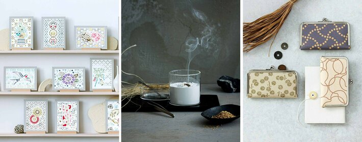 着物の染色の型紙である「伊勢型紙」のキットは、12ヵ月間毎月日本の歳時にまつわるモチーフを自分の手で描けるキットが届き、季節と手仕事の喜びを味わえます。平安時代から親しまれてきた「刻み香」のキットや、京都の職人による印伝細工のがま口は、日常生活の中でさりげなく、日本文化を感じられる逸品です。インテリアとして飾ったり、持ち歩いたり、上質な大人の日用品として愉しむことができます。