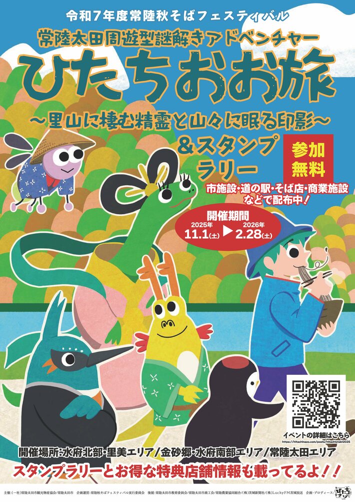 茨城県常陸太田市では、「常陸秋そばフェスティバル」 ~ひたちおお旅スタンプラリー&謎解きイベント~を令和8年2月28日(土)まで開催しています。