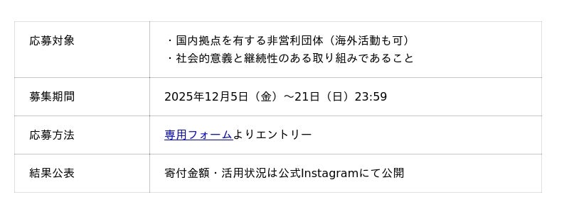 <寄付先募集概要>
