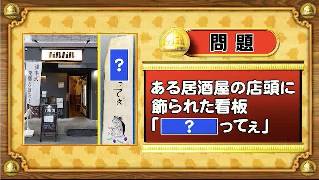 次は、ユニーク街看板の問題。ある居酒屋の店頭に飾られた看板「[?]ってぇ」の「?」に入る言葉を答えてください。
