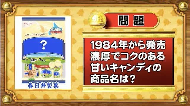 最後は、ロングセラーの問題。今から38年前の1984年から発売されている、春日井製菓の濃厚でコクのある甘いキャンディの商品名は何でしょうか?