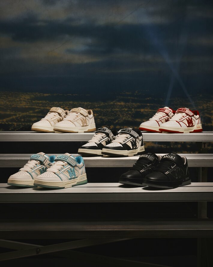 AMIRIがもつアメリカンな感性に根ざしたMAスカイラインは、スケートパークが持つ反骨精神とコート内の規律という二つの世界のエネルギーを融合させ、AMIRIのスニーカーラインに新たな進化をもたらします。