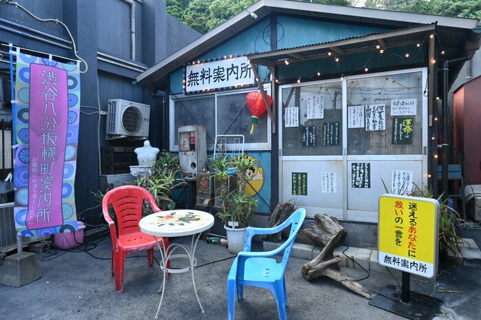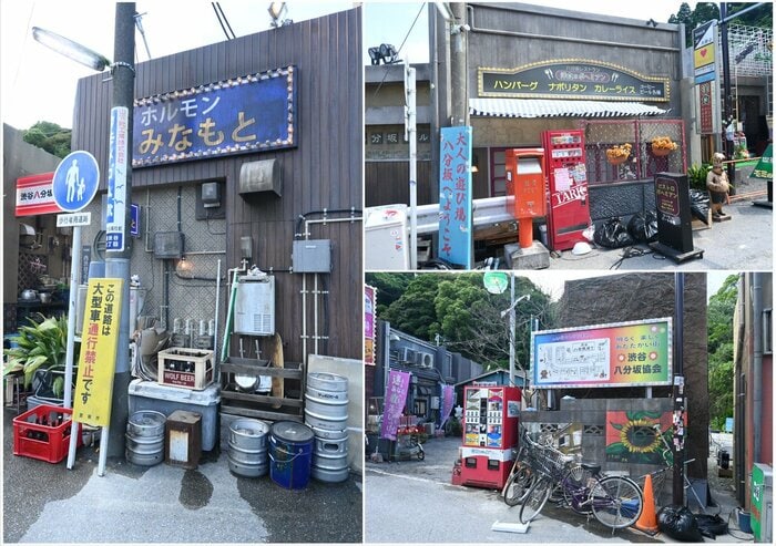 昼の八分坂について「繁華街の“裏路地感”が出るように、さまざまな自動販売機を設置したり、自転車を置いたり、タバコやポイ捨てされたゴミも置くなど、雑多な“飾り”を意識しました」と稲場さんが装飾のポイントを説明。