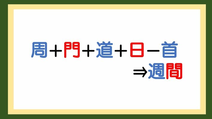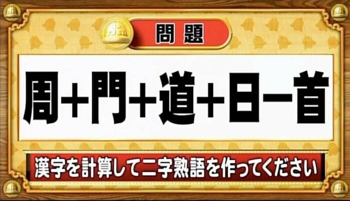「周+門+道+日-首」。漢字を計算して二字熟語を作成してください。