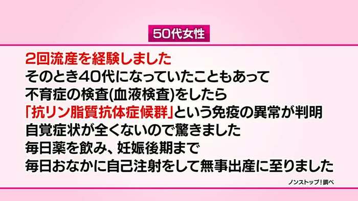 「2回流産し、検査の結果、不育症だったことがわかった」という50代女性のエピソードでは、丸田先生が妊娠してもお腹の中で子供が育ちにくい不育症について解説。