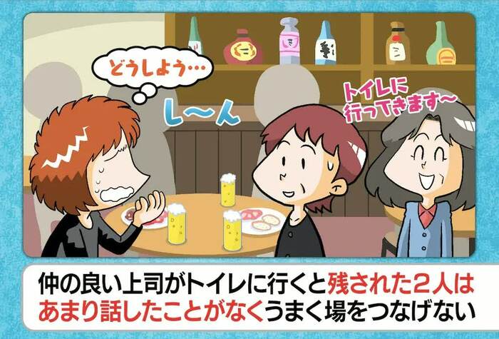 まず紹介されたのは、「上司2人と食事へ。仲のいい上司がトイレに行っている間、静かな上司と2人きりになり、場をつなげない自分にモヤモヤした」というお悩みです。