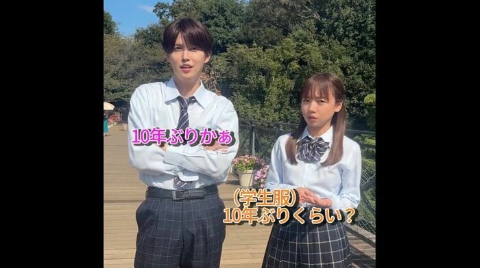 この動画に、SNSは「学生から10年経ってもこんなに可愛いいなんて2人とも最高☆」「かわいすぎるーーー」「瑠姫くんときょんこの制服やばいメロい」「28歳同い歳のお2人が青春すぎる〜!!お2人ともめーーーっちゃ似合ってます」「瑠姫くんも京子ちゃんも制服似合ってる☆ふたりの微妙に息の合ってない感じがかわいい!!」と盛り上がりを見せています。