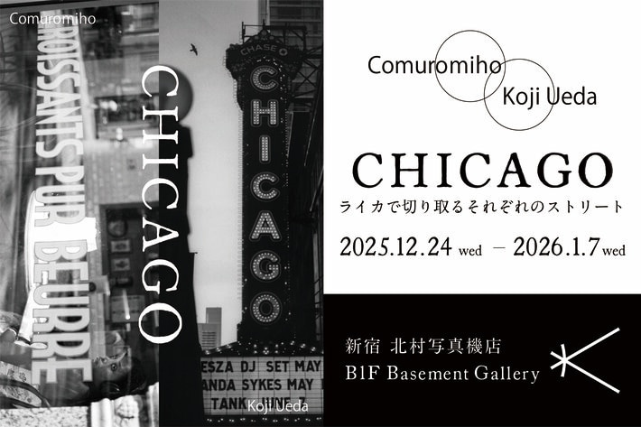 株式会社カメラのキタムラ(本社:東京都新宿区、代表取締役社長執行役員:山崎 智彦)が運営する新宿 北村写真機店では、2025年12月24日(水)~2025年1月7日(水)の期間、地下1F 「ベースメントギャラリー」にて、「上田晃司・コムロミホ写真展『CHICAGO-ライカで切り取るそれぞれのストリート-』」を開催します。本展示では、写真家上田 晃司氏と写真家 コムロ ミホ氏が、それぞれシカゴに複数回足を運び、季節ごとにさまざまな表情を見せる街並みをライカで撮りためた作品を展示します。