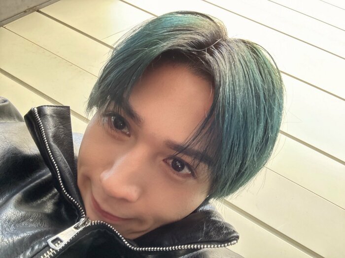 口角にきゅっと上げ、上目遣いでカメラを見つめたどアップ自撮りショットを公開した八木さん。その髪色は青みがかった緑色に染め上げられています!光の当たり方で深い緑色にも青み強目にも見えるニュアンスカラーとなっていて、トレンド感のある派手すぎず透明感のある寒色がとっても素敵です。自然なストレートでさらっと輪郭を包むようなスタイルもとよくお似合いですね♪