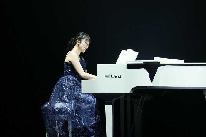 まずは卒業生・松井咲子さんがピアノ伴奏を披露。
