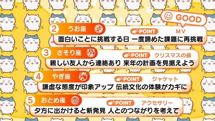 『めざましテレビ』で放送中の「ちいかわ占い」 テレビ放送がない日はお休みで、月~土:朝7時以降に更新予定です。