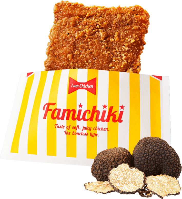 【内容】イタリア産黒トリュフパウダーを使用したファミチキです。黒トリュフの豊かな香りとチキンの旨みが絶妙にマッチした、ワンランク上の味わいです。